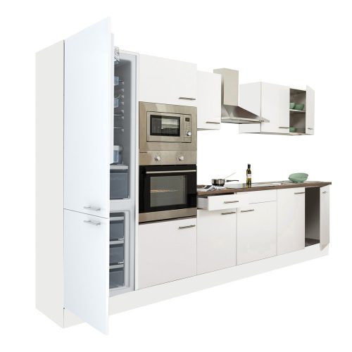 Yorki 330 konyhabútor fehér korpusz,selyemfényű fehér fronttal alulfagyasztós hűtős szekrénnyel