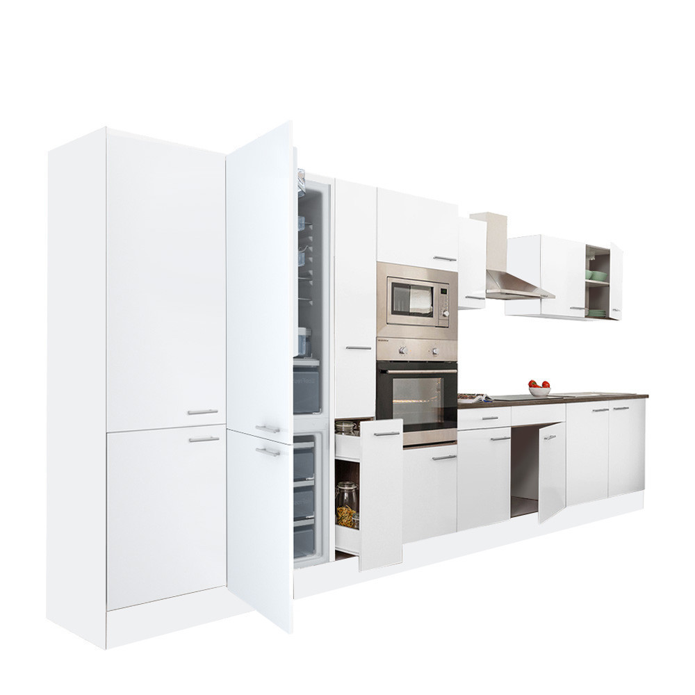 Yorki 420 konyhabútor fehér korpusz,selyemfényű fehér fronttal alulfagyasztós hűtős szekrénnyel