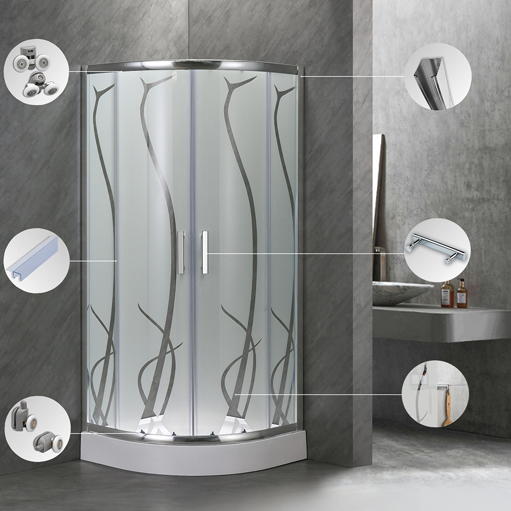 Leziter SB80S_AKI80ZT Spirirt Bamboo íves zuhanykabin erősített akril zuhanytálcával telepítés padlóra