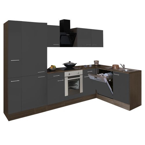 Yorki 310 sarok konyhabútor yorki tölgy korpusz,selyemfényű antracit front alsó sütős elemmel polcos szekrénnyel