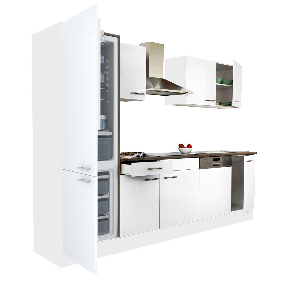 Yorki 280 konyhabútor fehér korpusz,selyemfényű fehér fronttal alulfagyasztós hűtős szekrénnyel