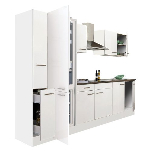 Yorki 300 konyhabútor fehér korpusz,selyemfényű fehér fronttal alulfagyasztós hűtős szekrénnyel