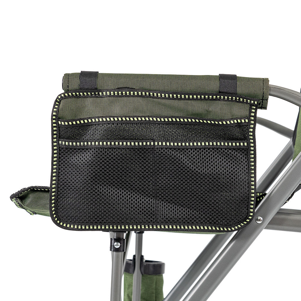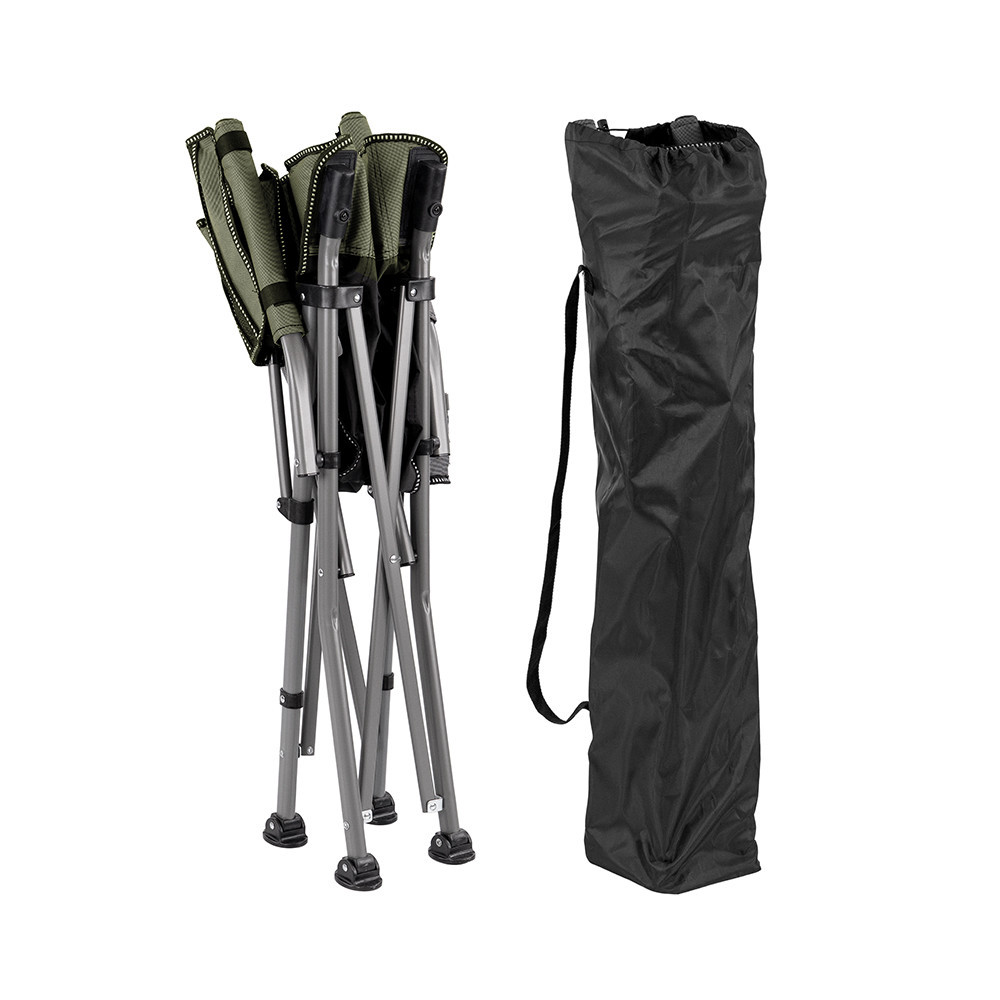• Ergonomikus kényelem – magas háttámla, párnázott karfák és kellemes ülésmagasság, hogy a hátad és a vállaid pihenjenek, miközben a kapást figyeled.